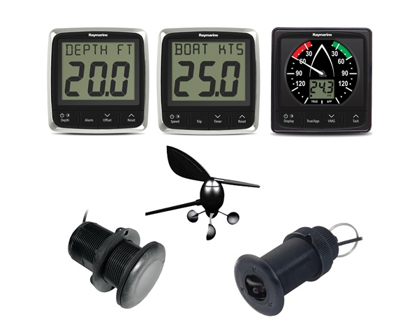 This instrument set from Raymarine combines three powerful i-series displays with matching transducers for speed, depth and wind. The components are coordinated in terms of data format, installation and network connection and provide precise values for navigation and ship operation. All units support modern on-board networks and offer a robust, reliable measurement platform.