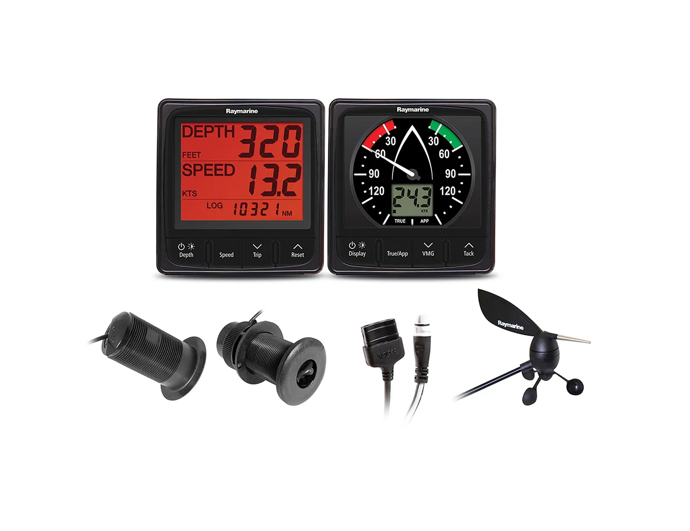 Raymarine i50 Tridata ja i60 tuulekomplekt sisaldab kõike vajalikku tuule-, kiiruse-, sügavuse- ja temperatuuri süsteemi loomiseks. Komplektis on i50 ja i60 instrumendid mis kuvavad andmeid selgelt ja täpselt. Komplektis olev lühikese varrega Wind Vane tuuleandur ühendub komplekti kuuluva 30-meetrise mastikaabliga otse i60 instrumendi külge. Komplektis olevad analoogväljundiga P120 ja P319 kiiruse/temperatuuri- ja sügavuse andurid paigaldatakse läbi põhja ja soovitatavalt kiilu ette ja ühendatakse otse i50 Tridata instrumendi külge. Komplektis on kaablid i50 ja i60 instrumentide omavaheliseks ühendamiseks ja väike adapterkaabel komplekti ühendamiseks olemasolevasse SeaTalk1 võrku. Kui paadis puudub olemasolev SeaTalk1 võrk, selles pole ühtegi vaba SeaTalk1 pesa või plaanid seda komplekti ühendada STNG võrku, siis pea enne ostu meiega nõu, sest vajad kindlasti veel mõnda kaablit või üleminekut.