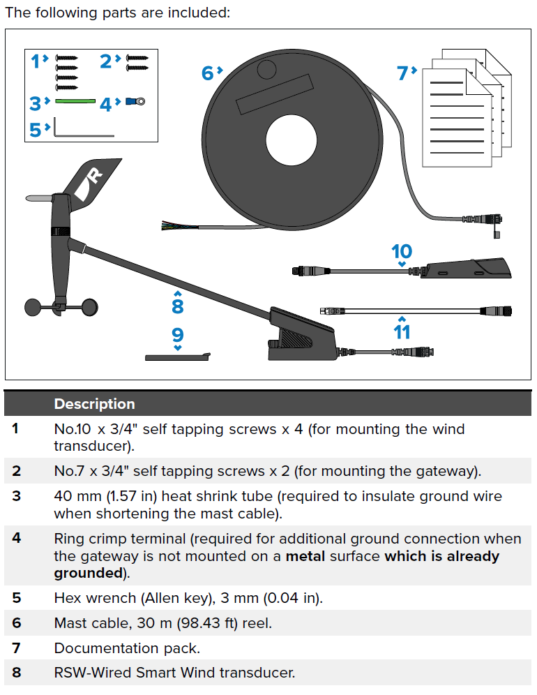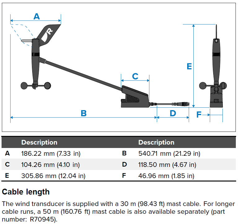Raymarine RSW Wired Smart Wind tuuleandur on professionaalse tasemega tuuleandur, mis pakub ülitäpset ja kalibreeritud tuulekiiruse ja -suuna andmeid. Standardkomplektis on 30 meetrine Smart Wind mastikaabel.