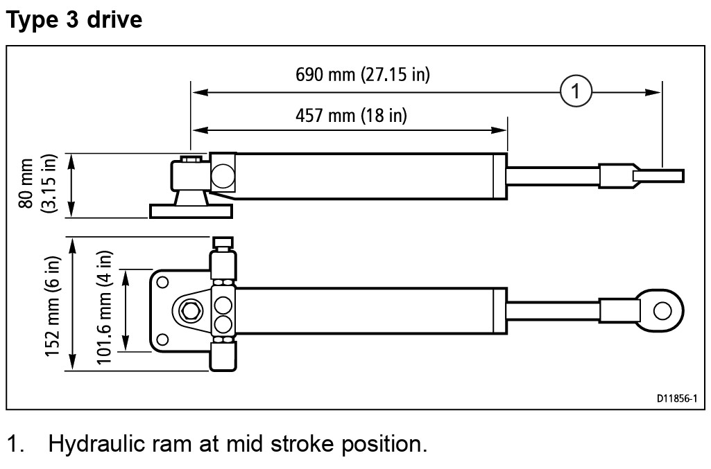 Raymarine Type 3 hüdrauliline lineaarajam 24V